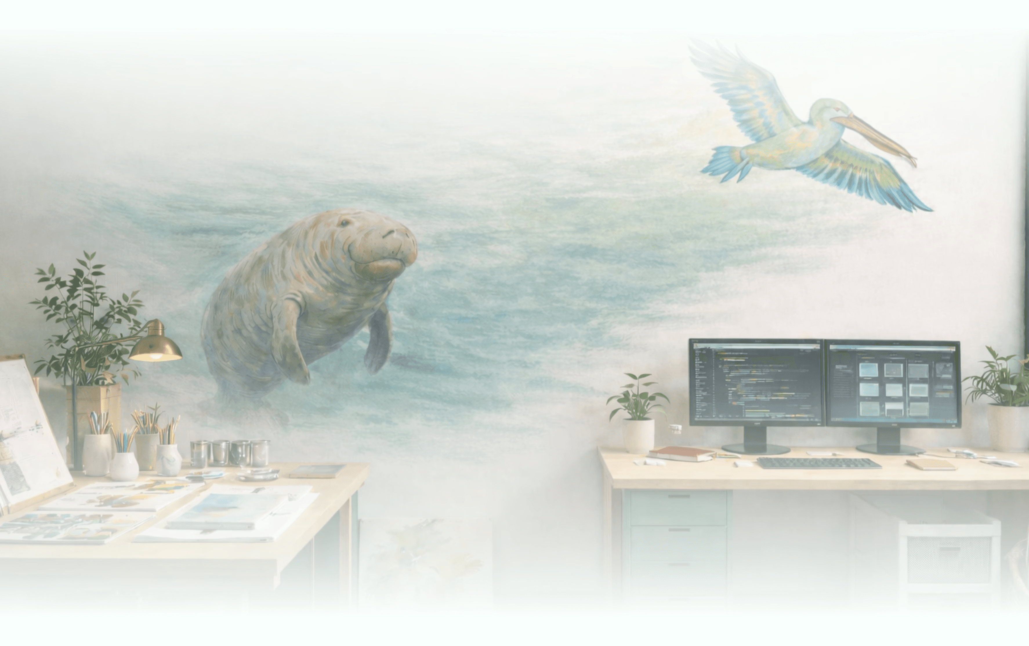 I design digital products and paint murals.
